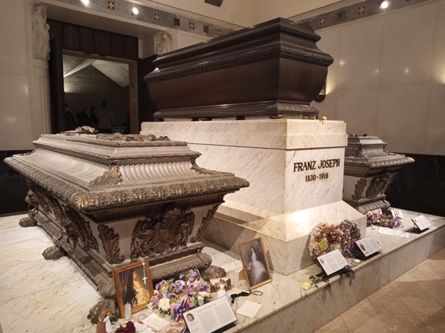 Figure 4. The imperial sarcophagi of Empress Sisi (L) and Emperor Franz Joseph (R) in the Kapuzinergruft. Photo by S. Reiter in November, 2025.